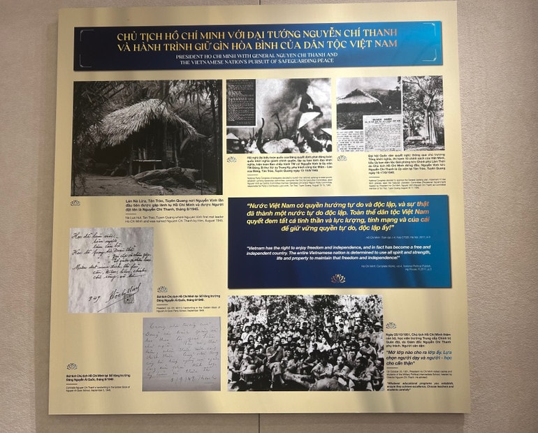 “Hành trình vì hòa bình” là chủ đề của bộ sưu tập hiện vật đang trưng bày, tái hiện sinh động dấu ấn hoạt động của Chủ tịch Hồ Chí Minh và Đại tướng Nguyễn Chí Thanh.